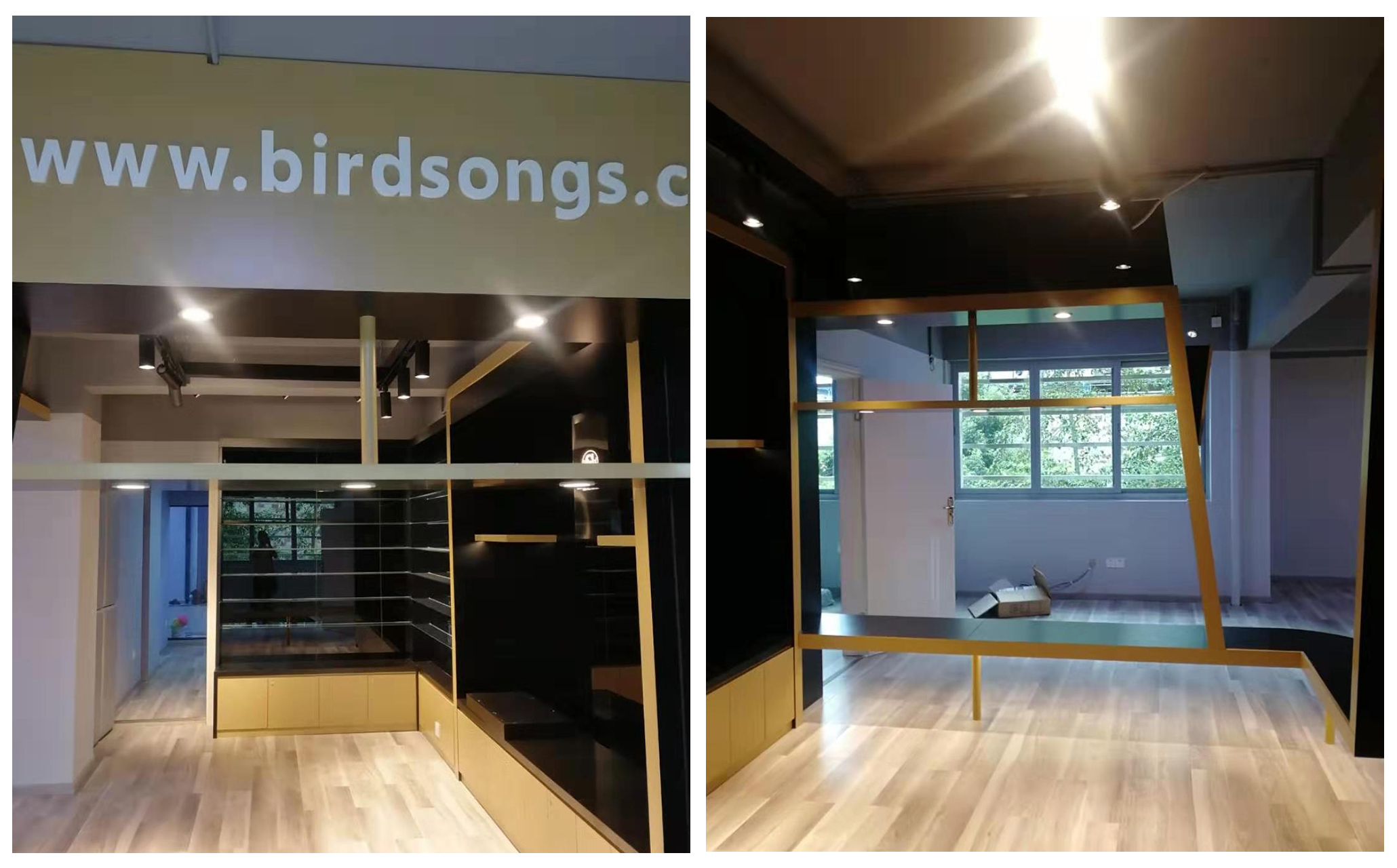 考慮到部分樂器需要同時展示售賣,這里利用原墻作為展柜加固面,陳列隔板尺度深淺做了統(tǒng)一規(guī)劃,以此排列的樂器猶如樂譜上歡快的音符跳動著,與此同時成為了此次樂器門店裝飾中的最佳展示區(qū)域。